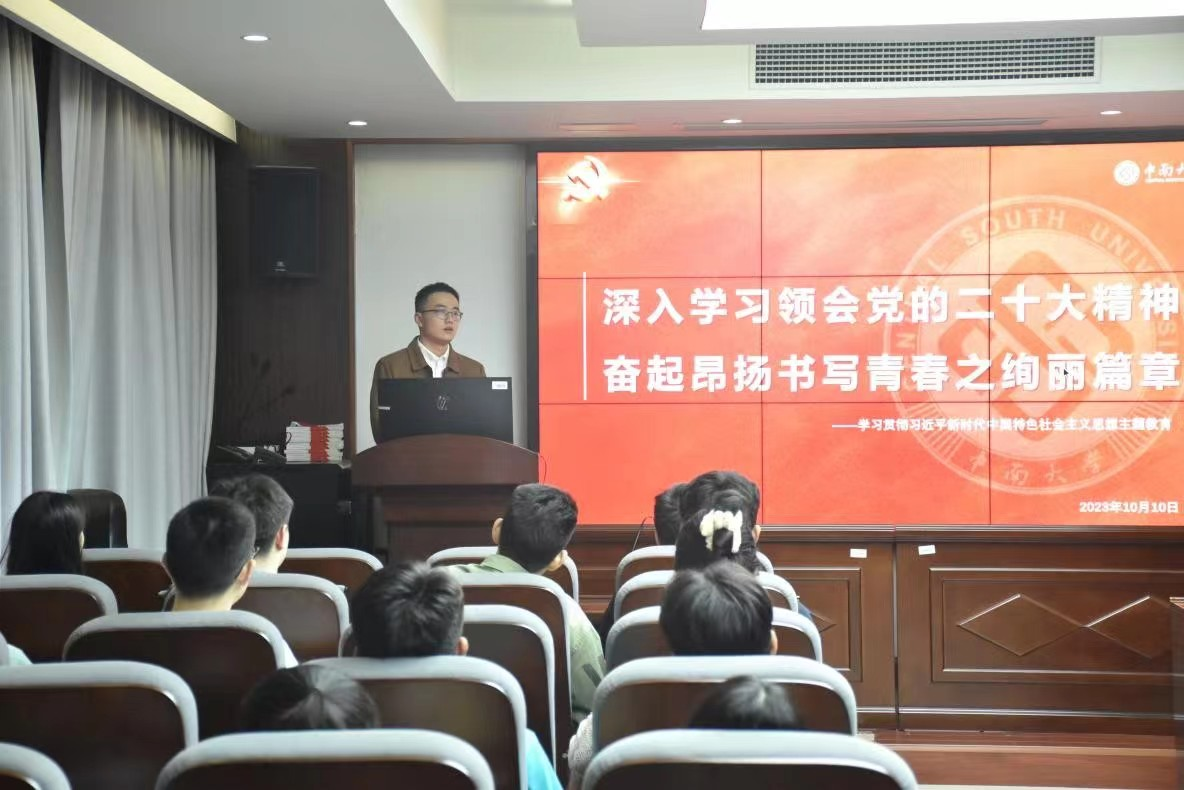 接着,研究生会主席团黄昱辉带领全体成员深入学习习近平新时代中国特色社会主义思想主题教育成果,体悟习近平文化思想。他详细介绍了二十大党章修改的新变化,号召大家做党章的坚定执行者、忠诚维护者,呼吁大家跟进习近平文化思想最新动态,不断攀登新的思想高峰。研究生会成员应当对标落实党的二十大青年工作部署及目标要求,做有理想、敢担当、能吃苦、肯奋斗的新时代好青年。