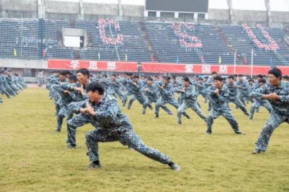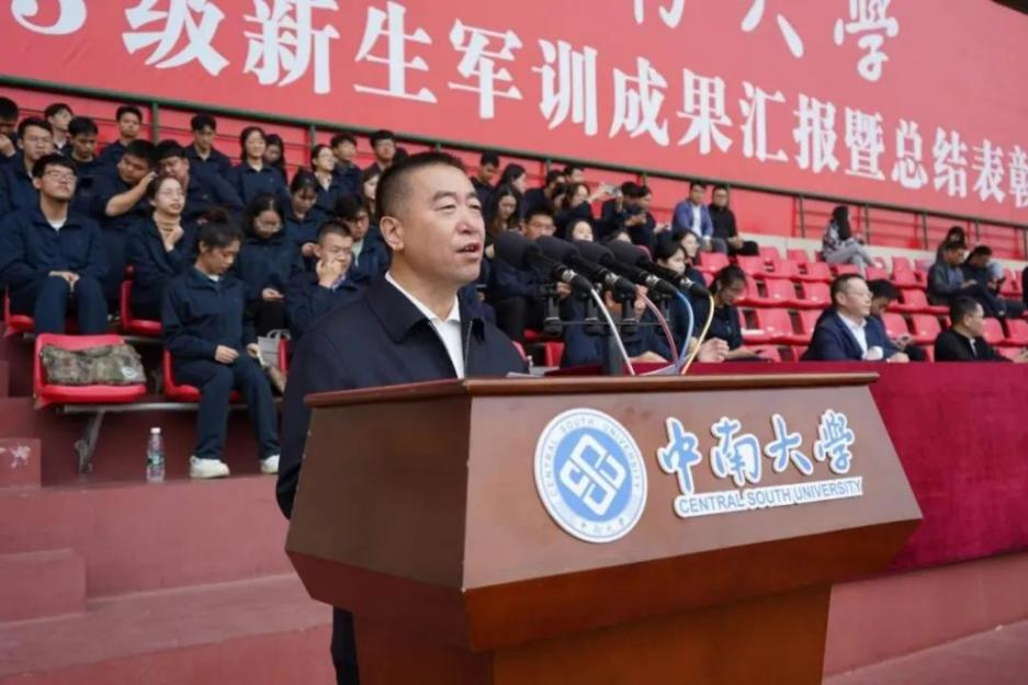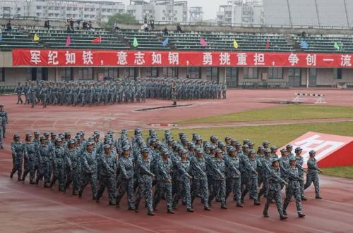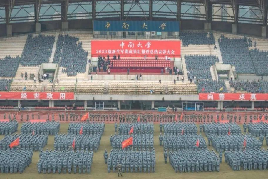 2023级本科新生圆满完成了计划任务,向出席大会的领导、老师、全体教官汇报军训成果。