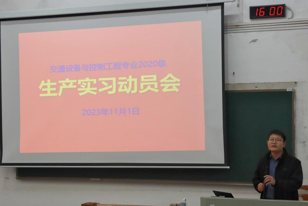 11月1日下午16:00,交通设备与控制工程专业2020级生产实习动员会于铁道校区攀登楼103举行。交通院党委副书记李苑,副院长陈维亚,交通设备与控制工程系主任章易程,实习队长谢劲松及全队指导老师,2020级辅导员石晓琪,以及2020级交通设备与控制工程专业全体同学参加会议。本次会议由谢劲松老师主持。