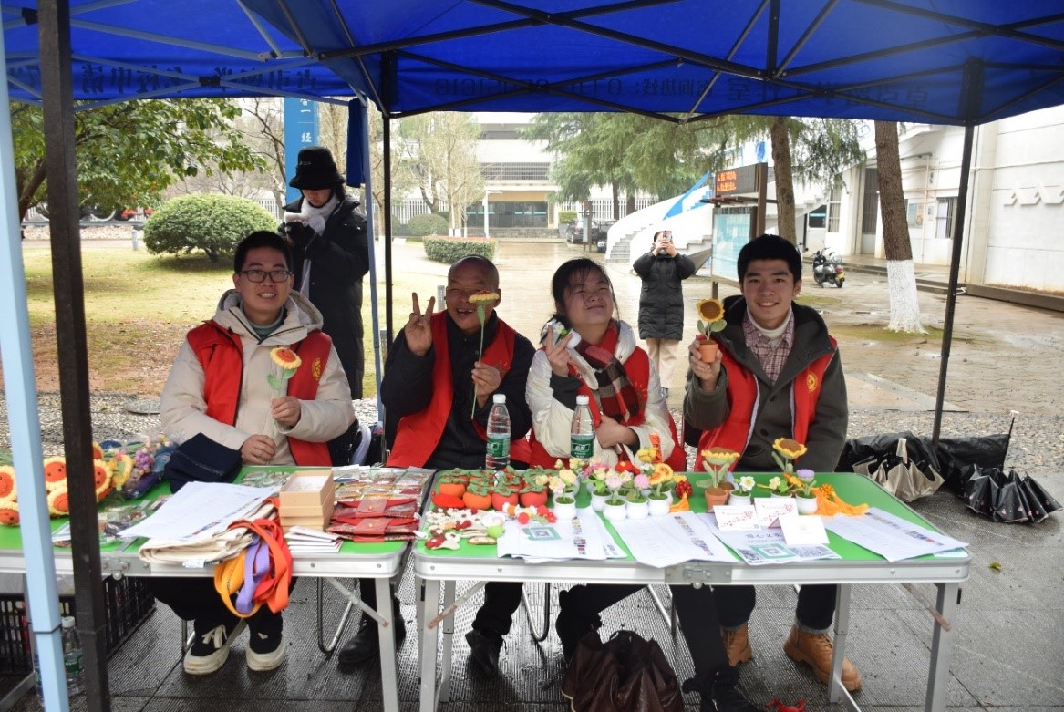 第一部分为“为爱点亮希望,共筑温馨家园”爱心义卖活动。学院团委特别邀请怡智家园的小伙伴们,在铁道校区展开一场别开生面的爱心义卖活动。每一件手工艺品都是怡智家园学员们辛勤努力的结晶,不仅代表着学员们的创意和技艺,更凝聚了他们对生活的无限热爱和对未来的无限憧憬。活动现场,许多师生被怡智家园学员们坚韧不拔、自强不息的精神深深打动,主动来到爱心义卖摊位前,奉献自己的一份爱心。