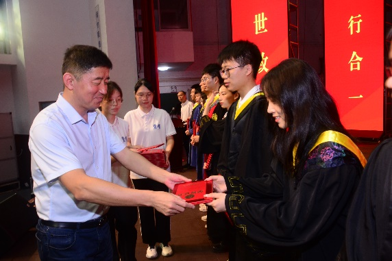 庄严的国歌声后,韩锟副院长宣读《关于表彰2024届优秀毕业生的决定》,袁世平书记为湖南省优秀毕业生、湖南省创新创业优秀毕业生、av直播