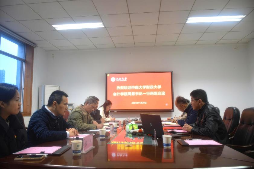 11月20日下午三点,中南财经政法大学会计学院党委书记周伟,副书记、纪委书记兼行政副院长黄波,副书记胡桂锬,党务秘书畅雅莉及本科第二党支部书记黎玥一行来av直播
