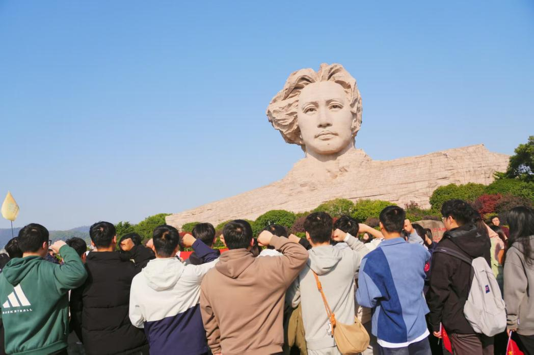 队伍迈着坚定的步伐,沿着沿江步道向橘子洲头青年毛泽东雕塑行进。全程7.4公里的徒步路线,串联起长沙核心红色地标,每一步都踏在历史的印记上,每一处风景都承载着革命的记忆,让大家在体力与意志的锤炼中,深刻体悟革命先辈当年为理想信念不懈奋斗的艰辛与执着。寒风中飘扬的党旗和院旗,与昂扬的姿态相映成景,成为湘江之畔一道亮丽的风景线。