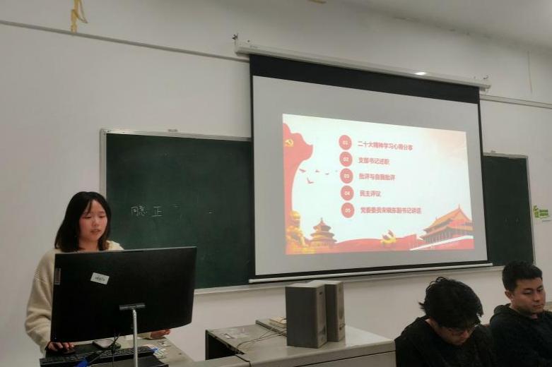 会议伊始,支部成员交流讨论党的二十大精神的感想与收获。郭翼成同志提出,发展人才强国战略,要把世界人才聚集到党和国家的事业中来,要将自身前途与国家命运紧密联系起来;党支部书记陈晨老师强调,二十大精神学习是一个持久的过程,要多从原文原话体会其精神思想,结合自身实际切实感悟二十大精神。