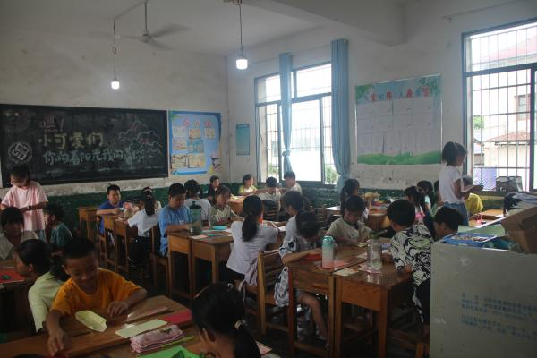 7月10日上午8:00,av直播 临时团支部赴湖南浏阳市关口街道金钩小学“多彩假期”暑期社会实践团在金钩小学的第一堂课铃声正式敲响。为了熟悉与了解学生,调动班级学习氛围,制定适宜的管理制度与方案,支教团队筹备了第一次班会。班会开始前,队员们在班级里进行工作,确定孩子们的上课注意事项、班会的准备材料并进行班会黑板报的制作。准备完成后,为使班会顺利开展,队员们在教室进行彩排,分工协作,主持...