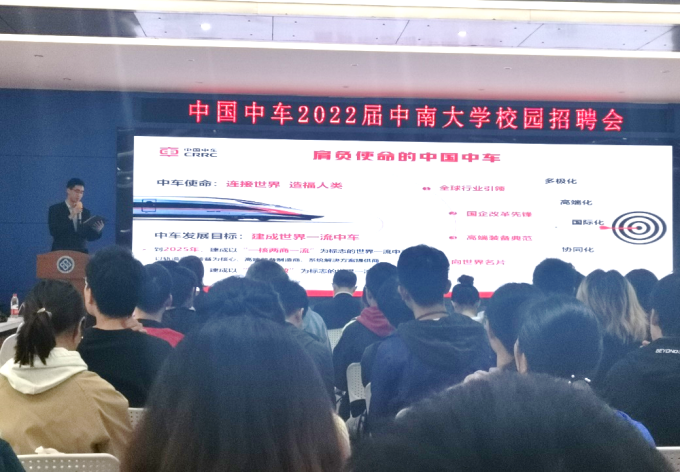 中国中车2022届校园专场招聘会在av直播 铁道校区顺利举行10月15日上午十点,中国中车在av直播 铁道学院立志厅举行了2022届校园专场招聘会。本次招聘会包括现场宣讲环节与面试环节。 作为交通行业里的一流企业,中国中车股份有限公司是全球规模最大、品种最全、技术领先的轨道交通装备供应商,拥有世界领先的轨道交通装备产品技术平台和制作基地,其制造的高速动车组系列产品已经成为中国向世界展示发展成就的重要名片。该公司...