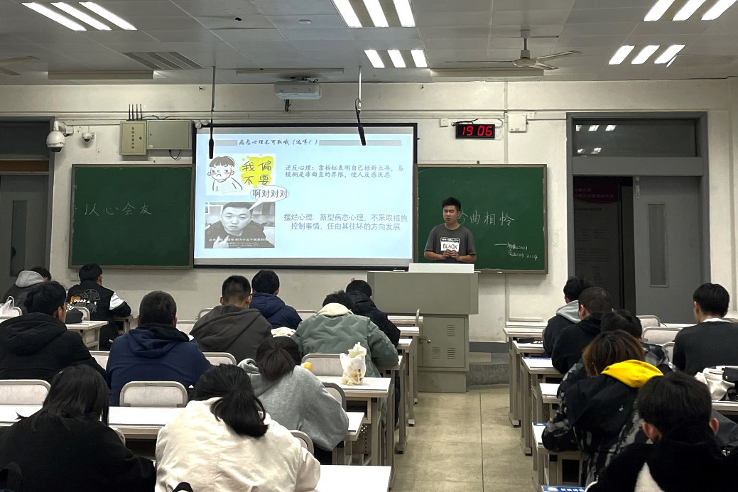 3月7日晚19:00,为响应学校号召,帮助同学们了解心理知识,学会如何正确对待日常生活中的心理问题,合理释放情绪,端正学习生活态度,过好大学生活,交运2113班联合交运2114班与物流2001班于A座211教室举行了“以心会友,衿曲相联”主题心理班会。交通运输类2113班班长霍钰嘉担任此次班会的主持人。活动伊始,霍钰嘉向同学们介绍了当下大学生常见的病态心理,如逆反心理、摆烂心理等,并提出了自己的观点及解决办法。他建议同学...