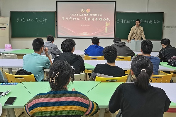 为加强团支部思想政治建设,学习宣传党的二十大精神,11月2日下午16:00,交通设备与控制工程2104班团支部在新校区A223教室举行学习党的二十大精神专题会议。团支部全体成员参加本次会议,会议由团支部书记马奕杨主持。会议伊始,团支书马奕杨向与会同学梳理了党的二十大报告,带领同学们了解了党和国家过去五年的工作和新时代十年的伟大变革,以及未来党和国家的发展走向。他呼吁同学们在日常学习生活中关注党和国家发展的大事...