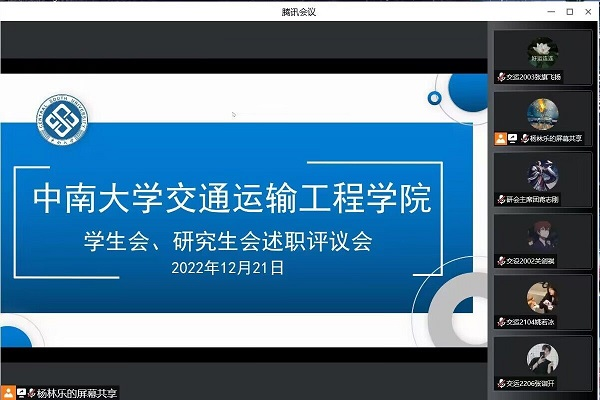 12月21日下午15:00,av直播 2022-2023学年度团委、学生会及研究生会述职评议会以线上腾讯会议的形式举行。院团委书记张健、院团委常务副书记郑繁简指导,学院团委、学生会、研究生会各部门学生代表共70余人参加此次会议。本次会议由学生会主席杨林乐主持。在本次会议上,院团委、学生会、研究生会主席团成员及各部门部长从政治态度、道德品行、学习情况、工作成效、纪律作风五个方面进行述职报告。会议伊始,学院学生...