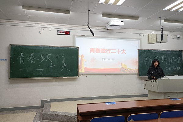 3月5日下午16:00,交通运输2102班于新校区A座104举行“青春践行二十大”主题班会。交运2102全体同学参加本次班会,班会由2102班班长薛轲奕主持。班会伊始,班长向同学们简要介绍了中国共产党第二十次全国代表大会的召开时间和地点并带领同学们分模块依层次地学习感悟二十大精神。首先,班长叙述了党的二十大的主题。紧接着,班会主要以深刻把握新时代十年伟大变革的里程碑意义,领会开辟马克思主义中国化时代化新境界和实施科教...